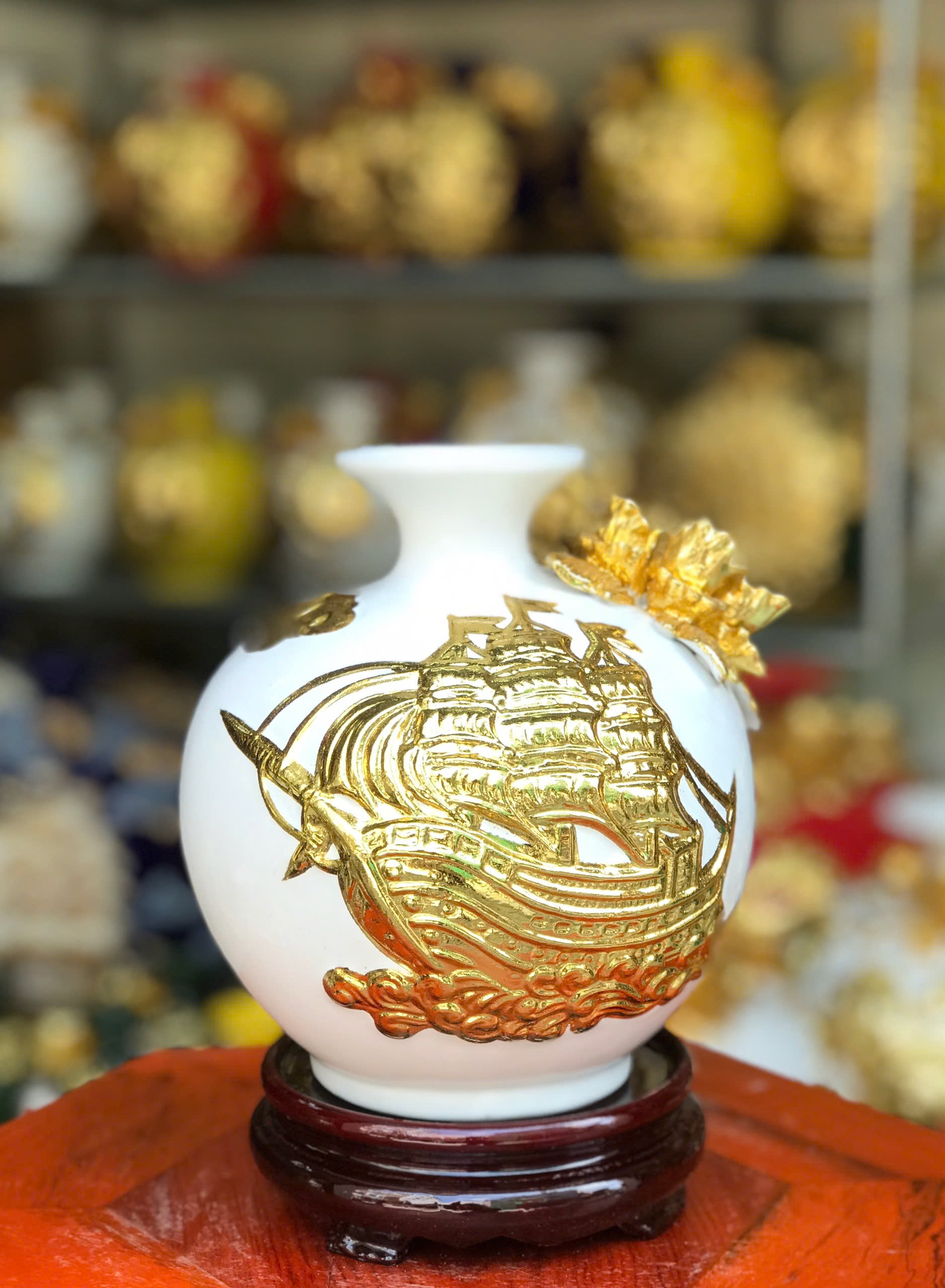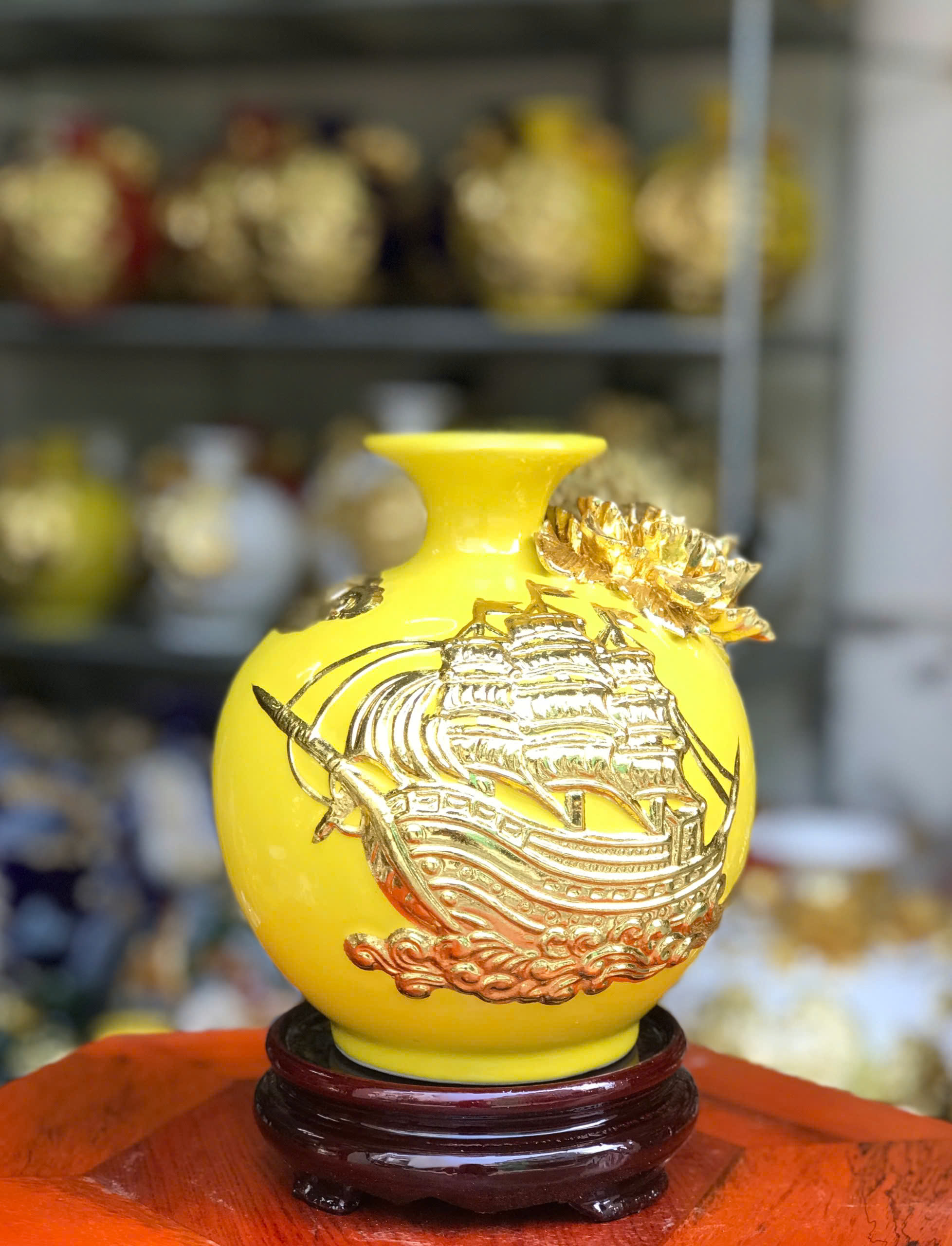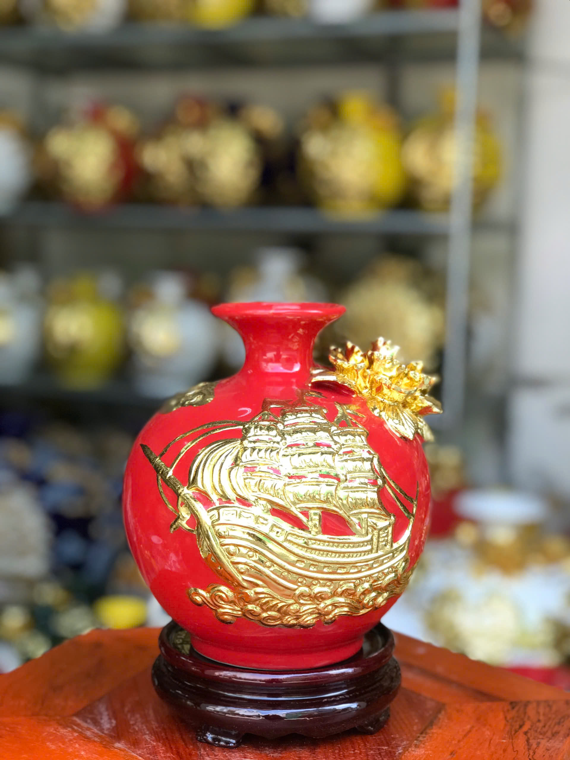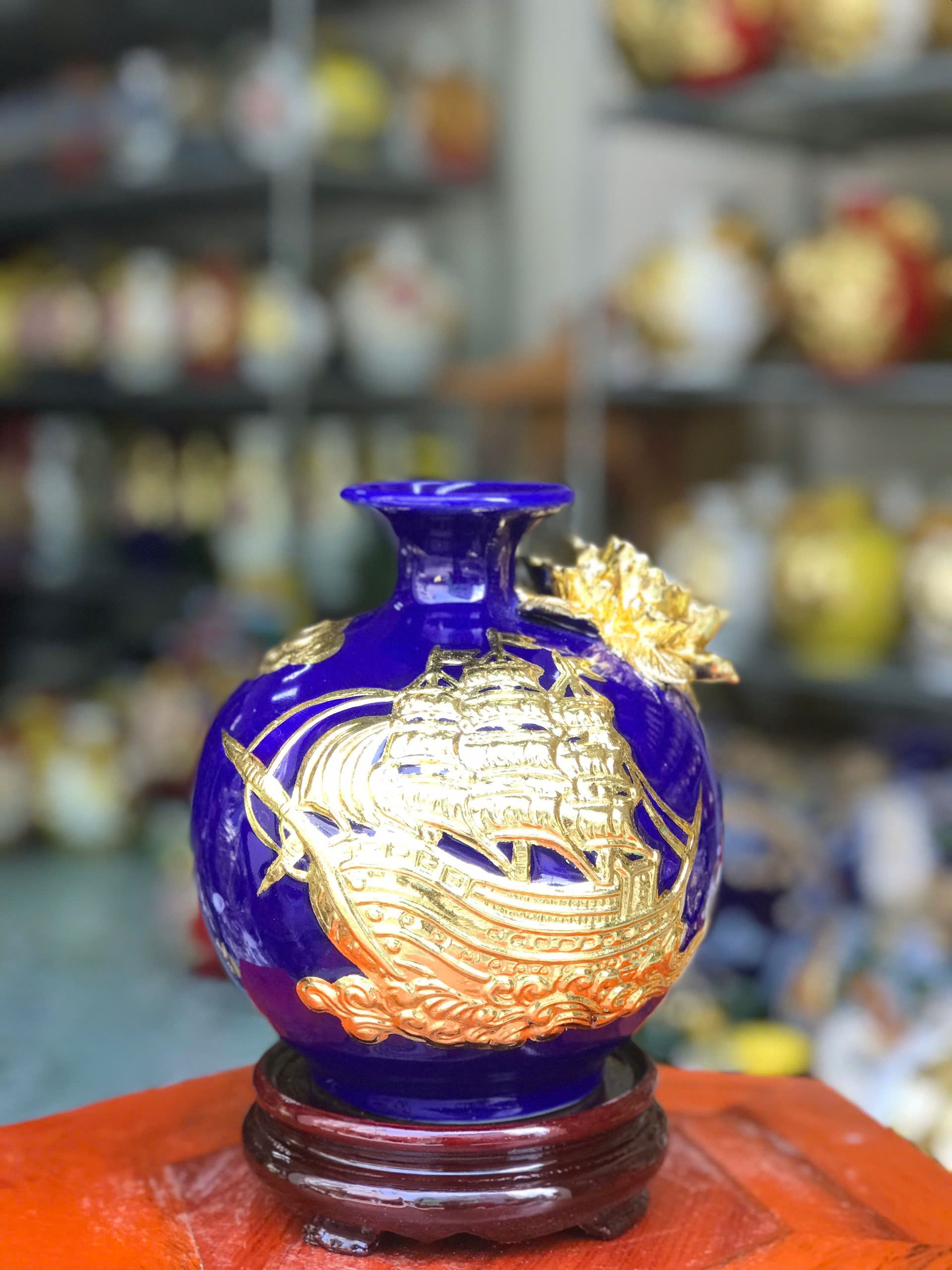 Bình hút tài lộc Thuận buồm xuôi gió là một vật phẩm gốm sứ phong thủy mang ý nghĩa sâu sắc, được chế tác thủ công tinh xảo bởi các nghệ nhân. Đây không chỉ là một món đồ trang trí sang trọng mà còn là biểu tượng của sự may mắn, thành công và tài lộc, đặc biệt phù hợp cho những người làm ăn kinh doanh.