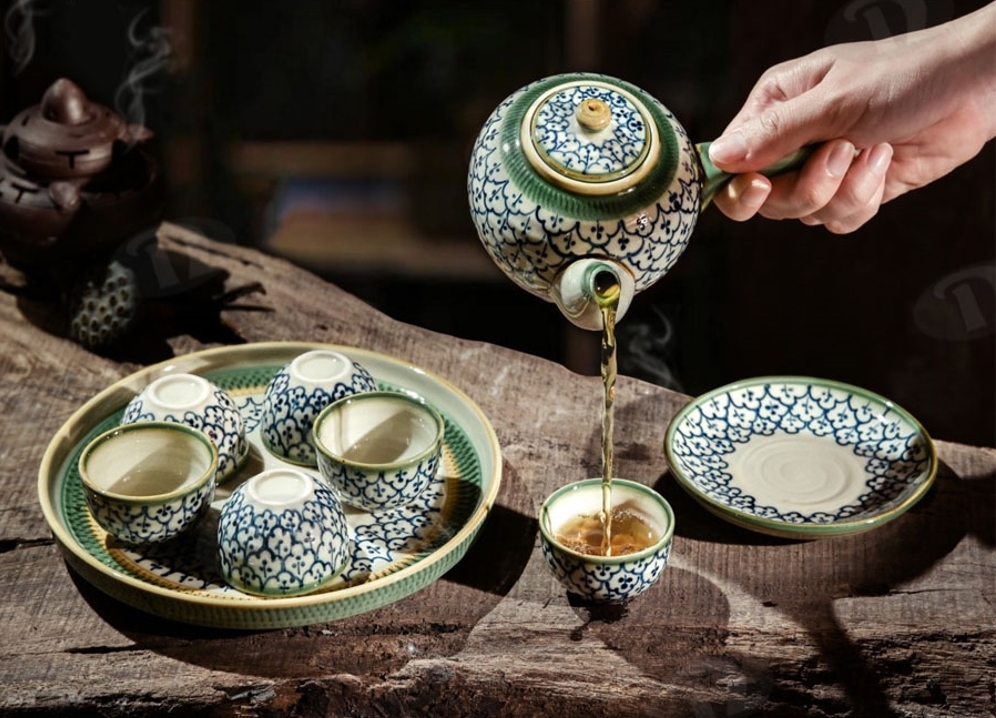 - Chất liệu gốm sứ cao cấp: Sản phẩm được làm từ gốm sứ Bát Tràng trứ danh, nung ở nhiệt độ cao, đảm bảo độ bền vượt trội và an toàn tuyệt đối cho sức khỏe. Chất liệu gốm sứ giúp ấm giữ nhiệt tốt, lưu giữ hương vị trọn vẹn của trà.