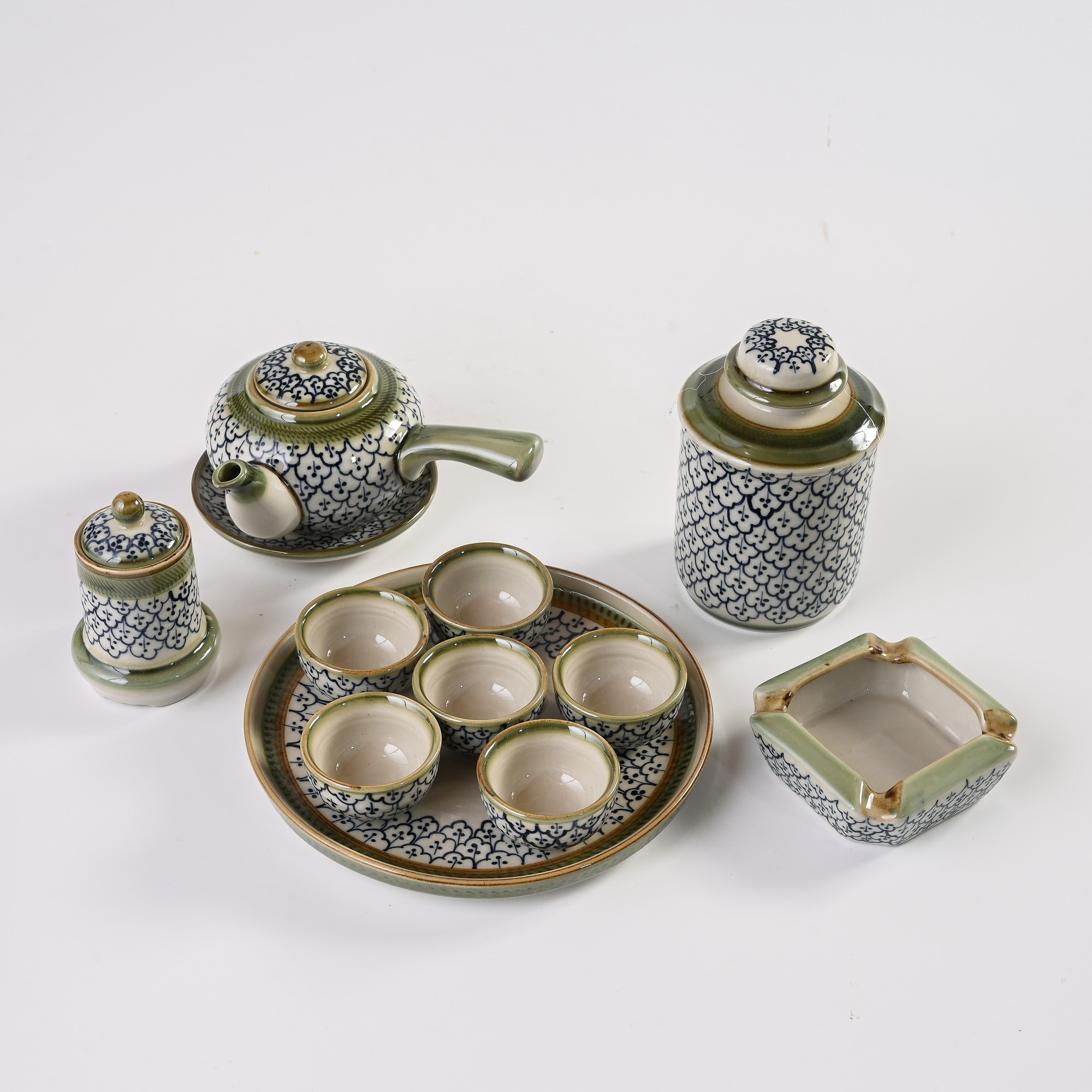 - Khay tròn tiện dụng: Bộ sản phẩm đi kèm một khay tròn đồng bộ về màu sắc và họa tiết, không chỉ giúp việc bày biện ấm chén trở nên gọn gàng mà còn tăng thêm vẻ đẹp tổng thể cho bộ trà.
