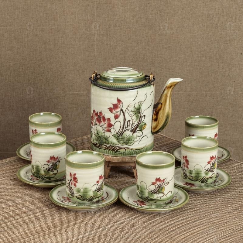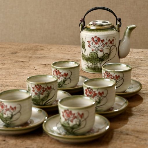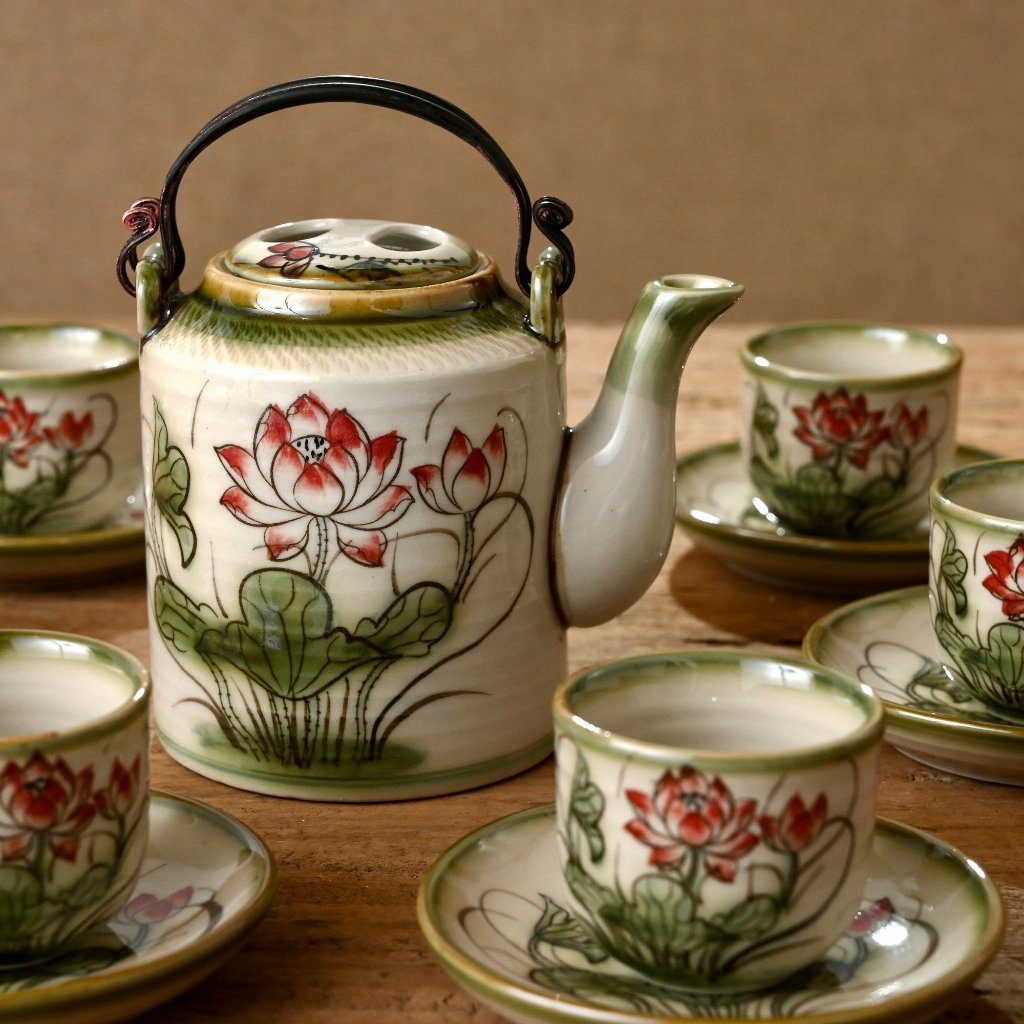 Họa tiết hoa sen được vẽ tay thủ công 100%, là biểu tượng của sự thanh cao, tinh khiết. Bộ ấm trà này không chỉ dùng để pha trà mà còn mang ý nghĩa phong thủy tốt lành.