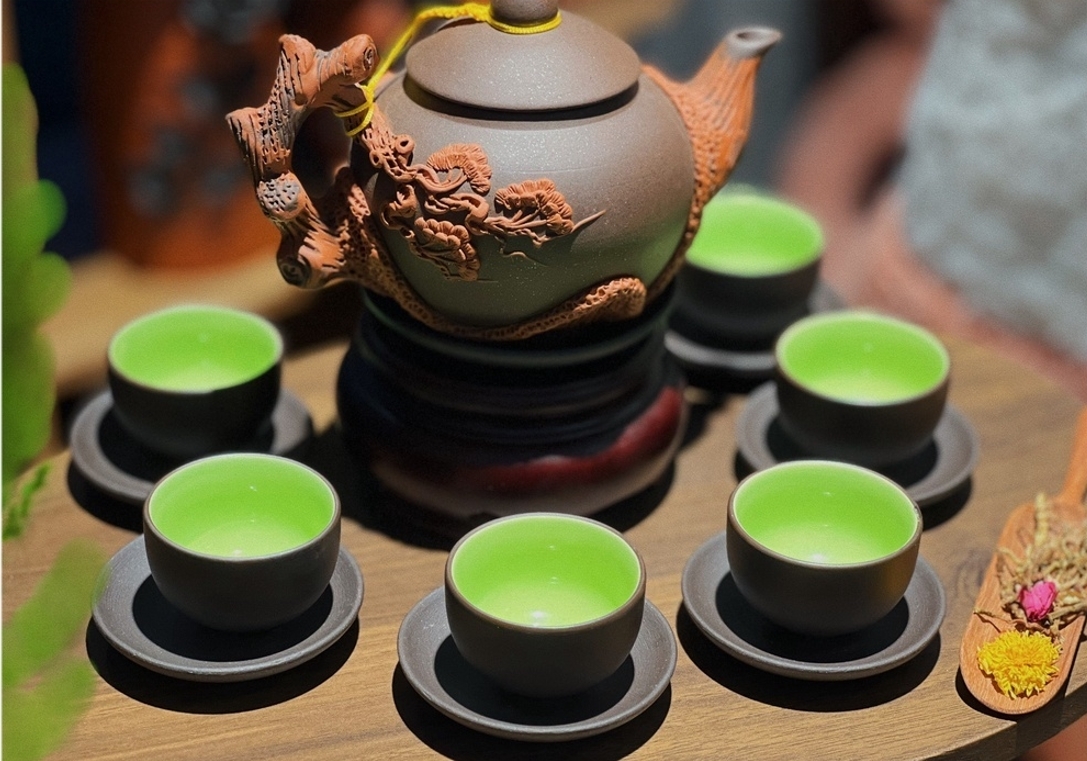 Thiết kế tinh xảo, màu sắc nâu đen trầm ấm kết hợp hài hòa với lớp men xanh ngọc bích bên trong chén, tạo nên vẻ đẹp sang trọng và độc đáo.